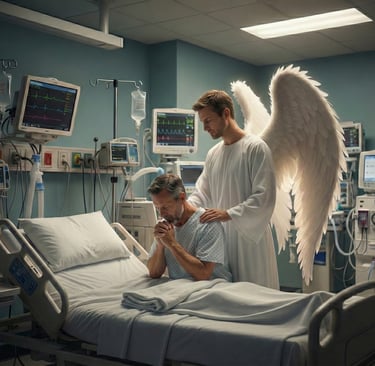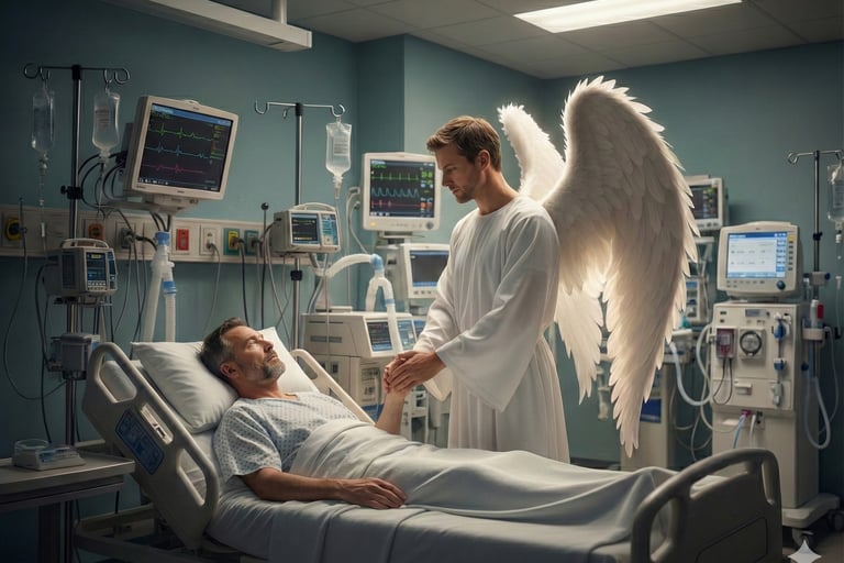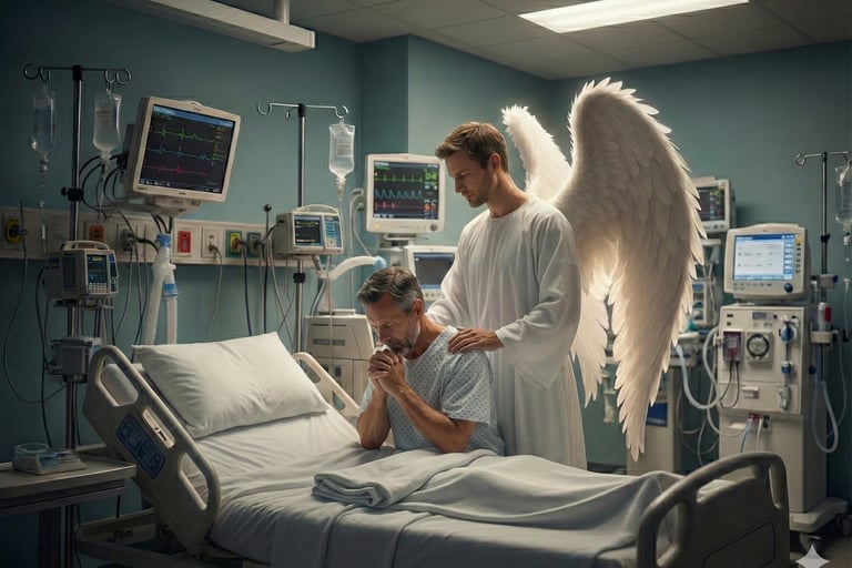 Mesmo cercado de aparelhos, comecei a orar. Ali, naquela cama de UTI, "dobrei meus joelhos" no meu coração, e falei com Deus. Foi então que Ele enviou um anjo para falar comigo. Não sei dizer se foi um sonho ou uma visão, mas eu sei que vi aquele anjo. Eu não tinha forças para falar, apenas concordava com a cabeça enquanto ele falava comigo.